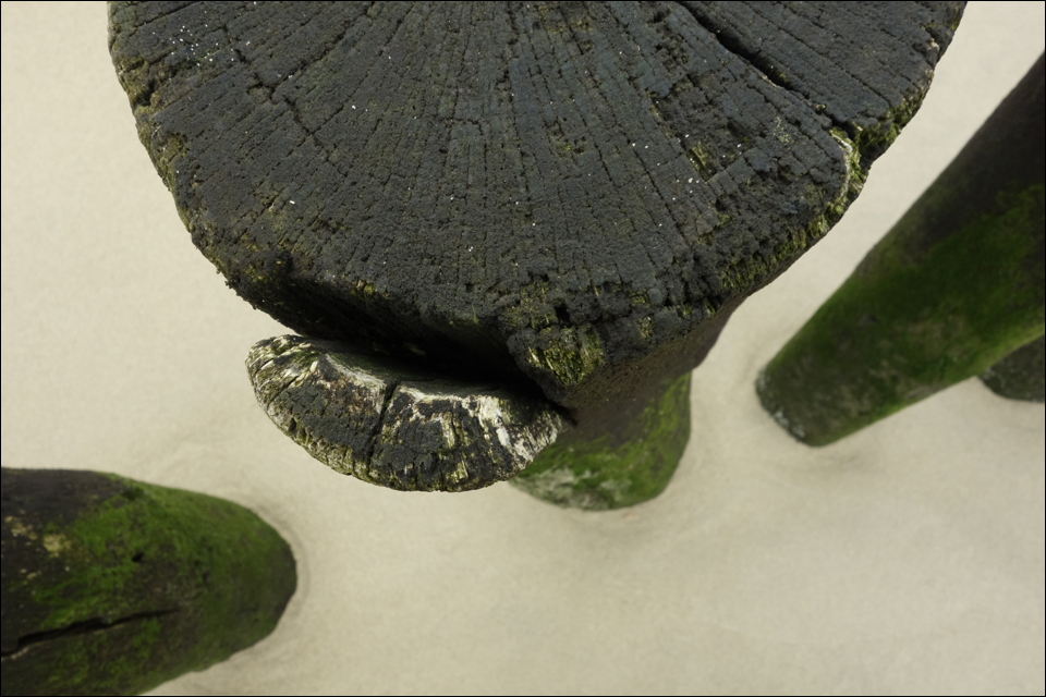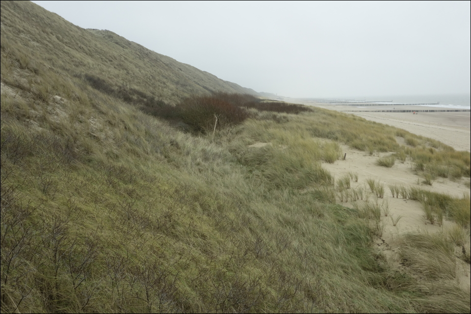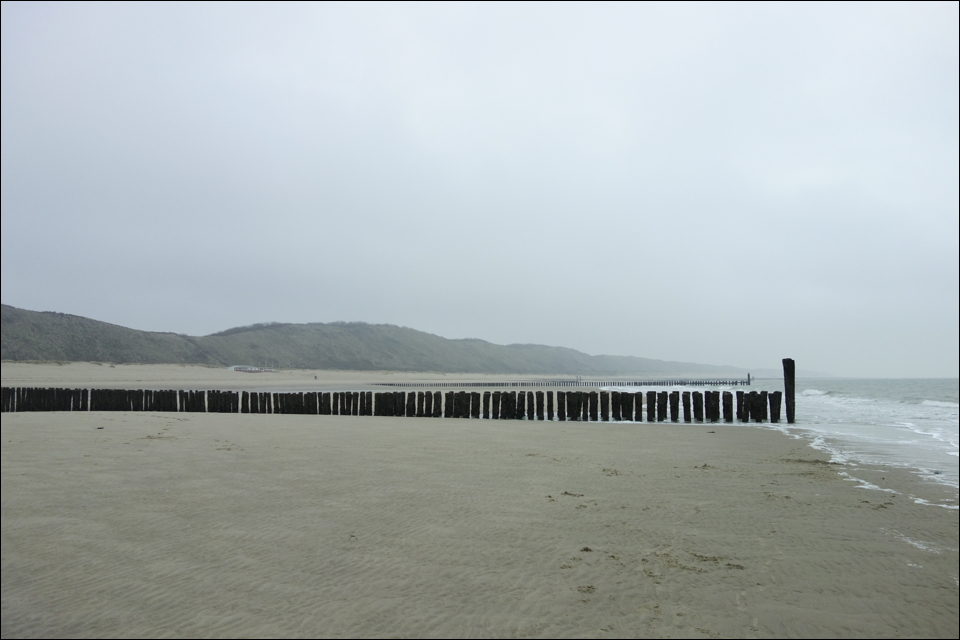 A Monday walk in early January took us south-east from Zoutelande. We did not quite reach Dishoek though on account of the icy wind. The breakwaters lent themselves to trying some abstract photography though, before we found a bit of shelter in the dunes on our way back (along with some WW II bunkers which were photographed with black and white film and will be part of my “Fragments of a Language of Terror”).