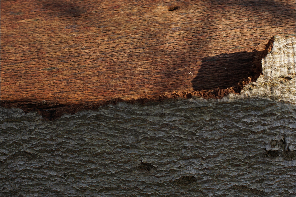 “Zwischen Baum und Borke” literally means: between the tree and its bark. While Germans can be stuck there, the English would rather be stuck between a rock and a hard place. [Those of you who subscribe to this blog will know that I love those relics of trees; they were photographed in the same area as the two most recent Watching the Game posts.]